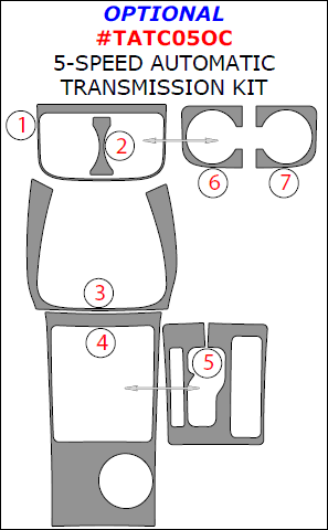 Toyota Tacoma 2005-2015, Optional 5-Speed Automatic Transmission Interior Kit, 7 Pcs.