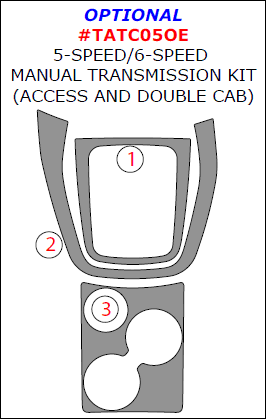 Toyota Tacoma 2005, 2006, 2007, 2008, 2009, 2010, 2011, 2012, 2013, 2014, 2015, Optional 5-Speed/6-Speed Manual Transmission Interior Kit (Access Cab And Double Cab Only), 3 Pcs.