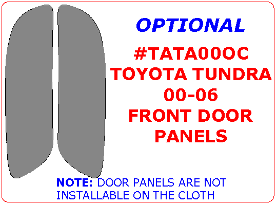 Toyota Tundra 2000, 2001, 2002, 2003, 2004, 2005, 2006, Interior Dash Kit, Optional Door Panels, 2 Pcs.