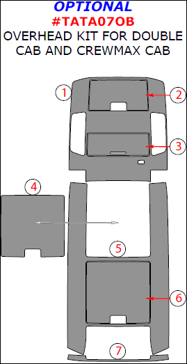 Toyota Tundra 2007, 2008, 2009, 2010, 2011, 2012, 2013, Interior Dash Kit, Optional Overhead Kit For Double Cab And CrewMax Cab, 7 Pcs.