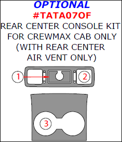 Toyota Tundra 2007, 2008, 2009, 2010, 2011, 2012, 2013, Optional Rear Center Console Interior Kit For CrewMax Cab Only(With Rear Center Air Vent Only), 3 Pcs.