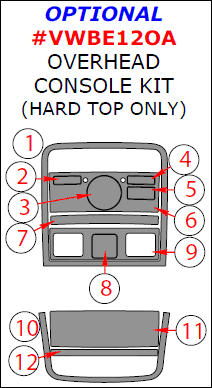 Volkswagen Beetle 2012, 2013, 2014, 2015, Optional Overhead Console Interior Kit (Hard Top Only), 12 Pcs.