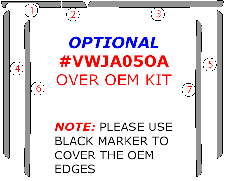 Volkswagen Jetta 2005.5-2009/Rabbit 2006, 2007, 2008, 2009/GTI 2006-2009, Interior Dash Kit, Optional Over OEM Kit (4 Door Models Only), 7 Pcs.