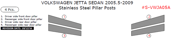 Volkswagen Jetta Sedan 2005.5, 2006, 2007, 2008, 2009, Stainless Steel Pillar Posts, 4 Pcs.