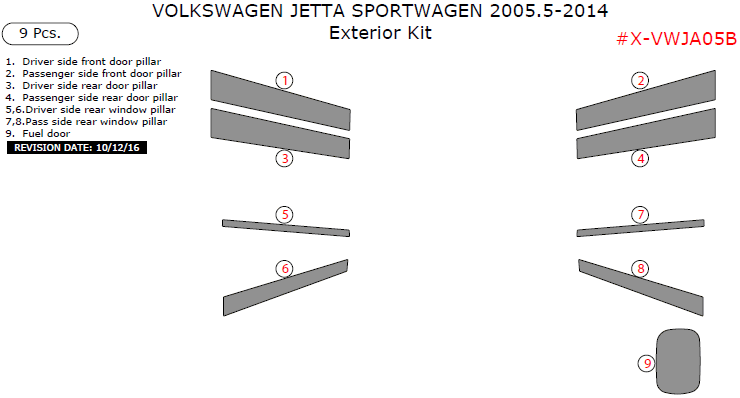 Volkswagen Jetta Sportwagen 2005.5, 2006, 2007, 2008, 2009, 2010, 2011, 2012, 2013, 2014, Exterior Kit, 9 Pcs.