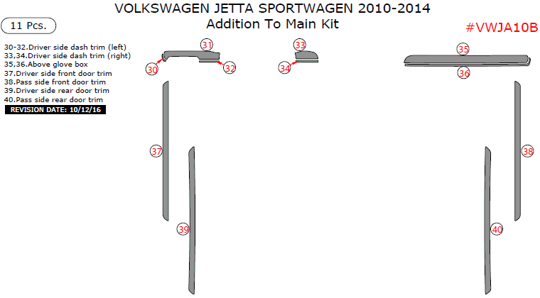 Volkswagen Jetta Sportwagen 2010, 2011, 2012, 2013, 2014, Addition To Main Interior Kit, 11 Pcs.