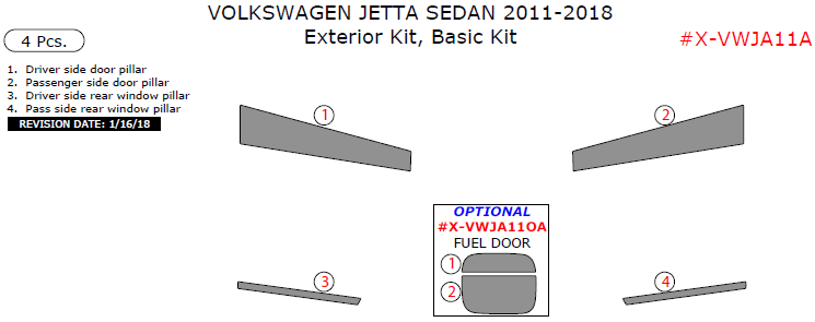 Volkswagen Jetta Sedan 2011, 2012, 2013, 2014, 2015, 2016, 2017, 2018 Basic Exterior Kit, 4 Pcs.