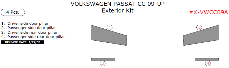 Volkswagen Passat CC 2009, 2010, 2011, 2012, 2013, 2014, 2015, Exterior Kit, 4 Pcs.