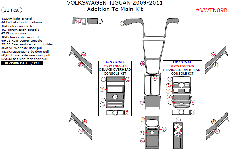 Volkswagen Tiguan 2009, 2010, 2011, Addition To Main Interior Kit, 21 Pcs.