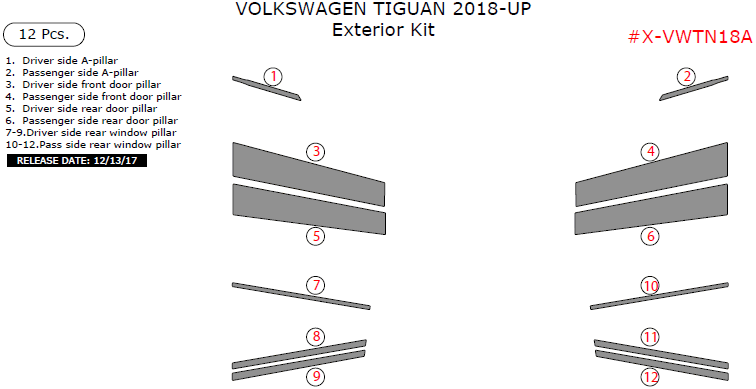 Volkswagen Tiguan 2018-2025, Exterior Kit, 12 Pcs.
