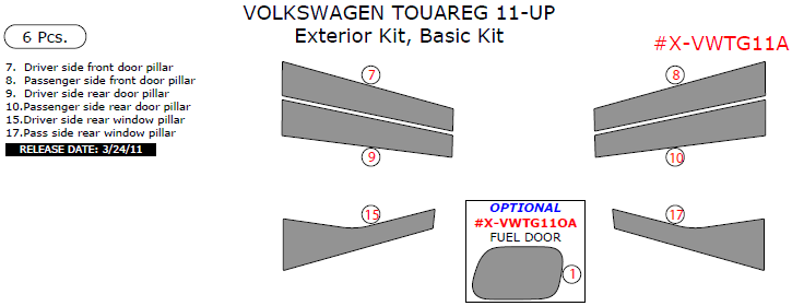 Volkswagen Touareg 2011, 2012, 2013, 2014, 2015, Basic Exterior Kit, 6 Pcs.