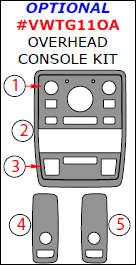 Volkswagen Touareg 2011, 2012, 2013, 2014, 2015, Optional Overhead Console Interior Kit, 5 Pcs.
