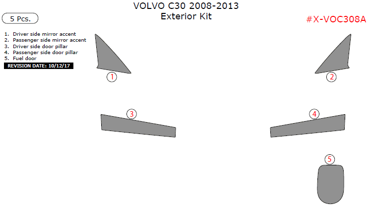 Volvo C30 2008, 2009, 2010, 2011, 2012, 2013, Exterior Kit, 5 Pcs.