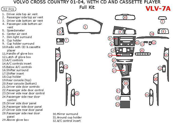 Volvo Cross Country 2001, 2002, 2003, 2004, Full Interior Kit, With CD and Cassette Player, 32 Pcs.
