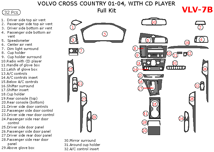 Volvo Cross Country 2001, 2002, 2003, 2004, Full Interior Kit, With CD Player, 32 Pcs.
