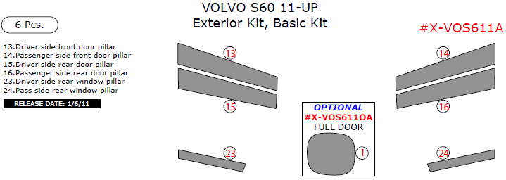 Volvo S60 2011-2012, Basic Exterior Kit, 6 Pcs.