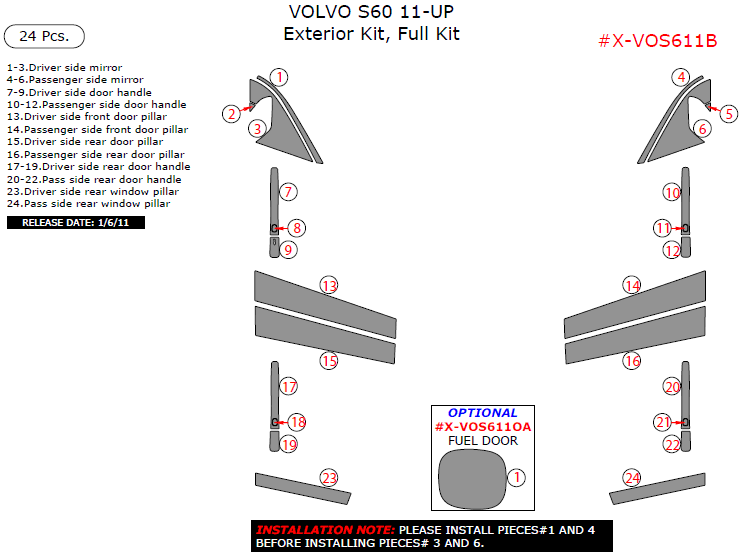 Volvo S60 2011-2012, Exterior Kit, Full Interior Kit, 24 Pcs.