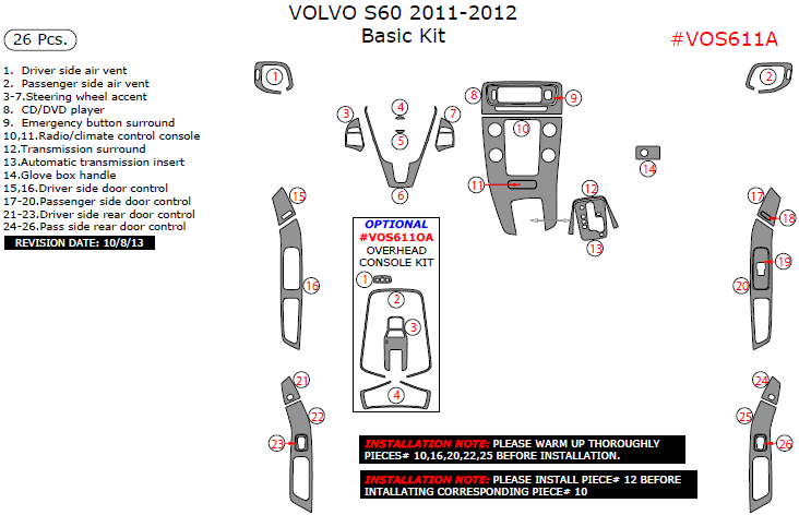 Volvo S60 2011-2012, Basic Interior Kit, 26 Pcs.