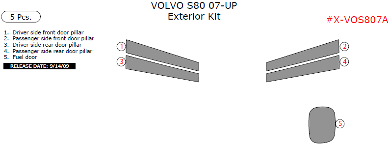 Volvo S80 2007, 2008, 2009, 2010, 2011, Exterior Kit, 5 Pcs.