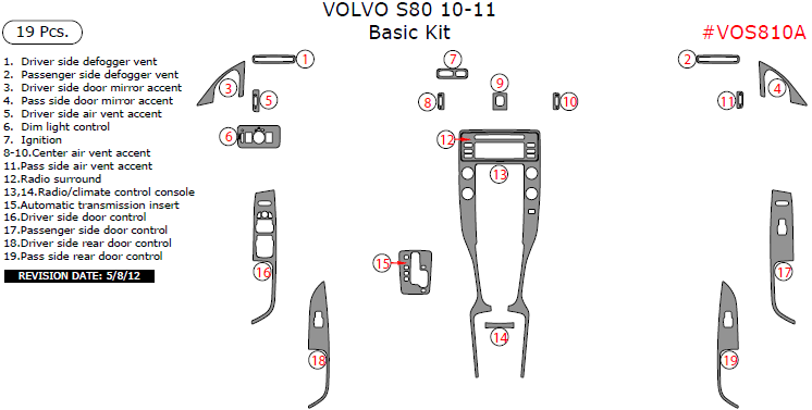 Volvo S80 2010-2011, Basic Interior Kit, 19 Pcs.
