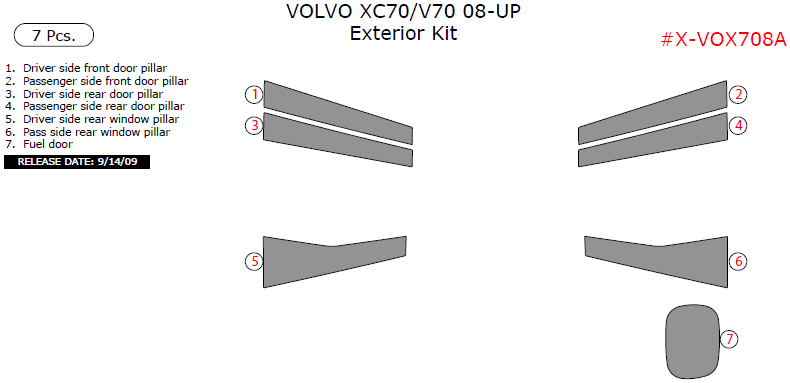 Volvo V70/XC70 2008, 2009, 2010, 2011, 2012, 2013, 2014, 2015, Exterior Kit, 7 Pcs.