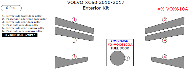 Volvo XC60 2010, 2011, 2012, 2013, 2014, 2015, 2016, 2017, Exterior Kit, 6 Pcs.