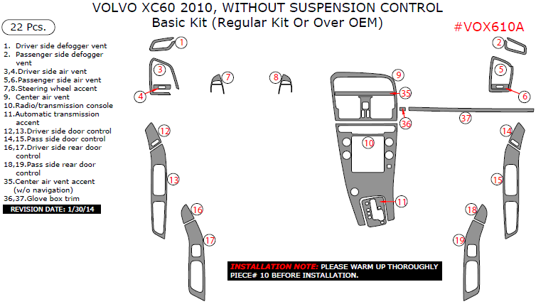 Volvo XC60 2010, Without Suspension Control, Basic Interior Kit (Regular Kit Or Over OEM), 22 Pcs.