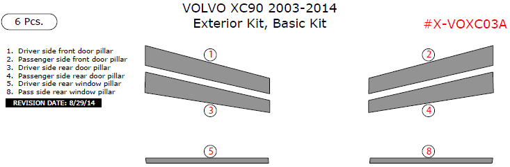 Volvo XC90 2003, 2004, 2005, 2006, 2007, 2008, 2009, 2010, 2011, 2012, 2013, 2014, Basic Exterior Kit, 6 Pcs.
