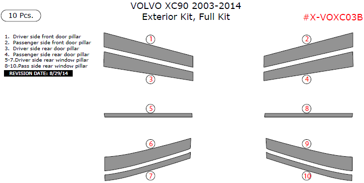 Volvo XC90 2003, 2004, 2005, 2006, 2007, 2008, 2009, 2010, 2011, 2012, 2013, 2014, Exterior Kit, Full Interior Kit, 10 Pcs.