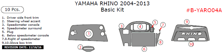 Yamaha Rhino 2004, 2005, 2006, 2007, 2008, 2009, 2010, 2011, 2012, 2013, Basic Kit, 10 Pcs.